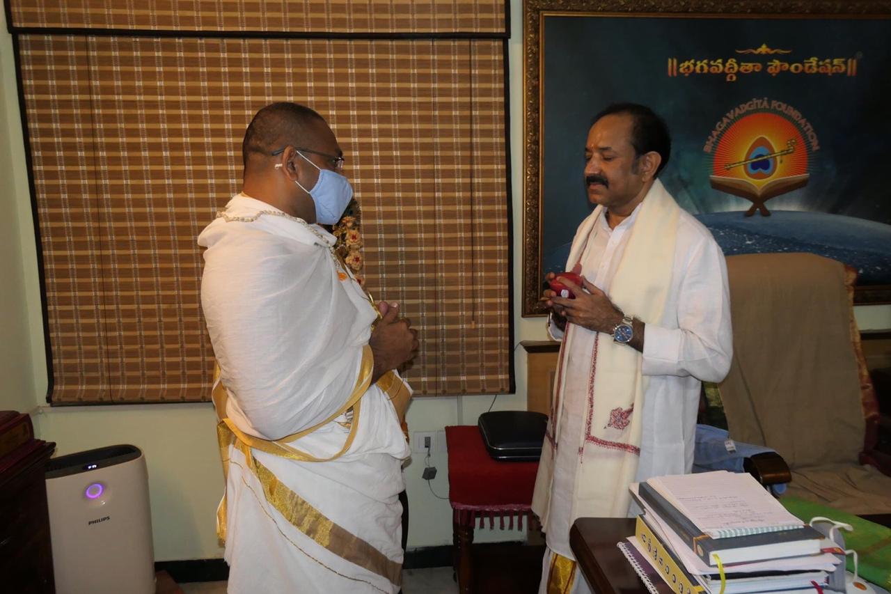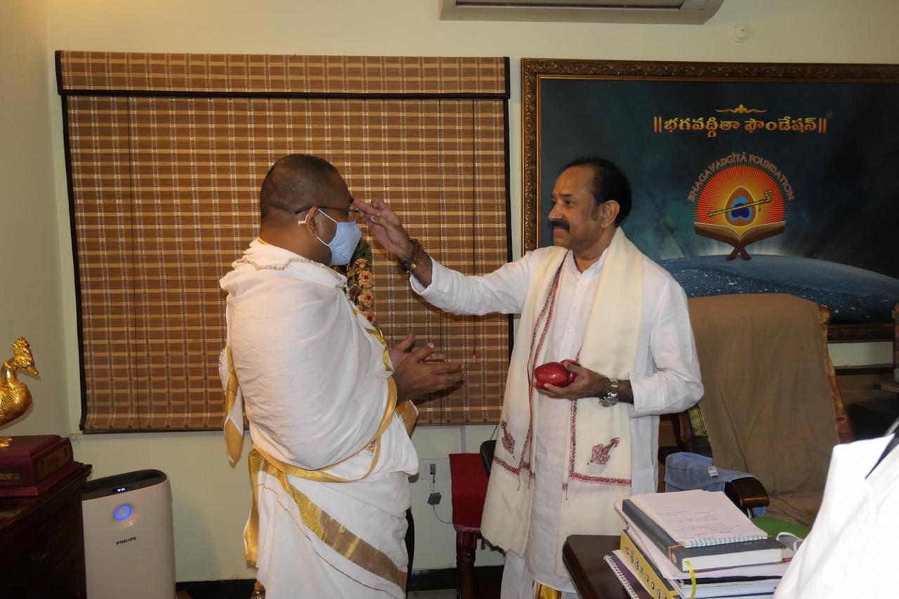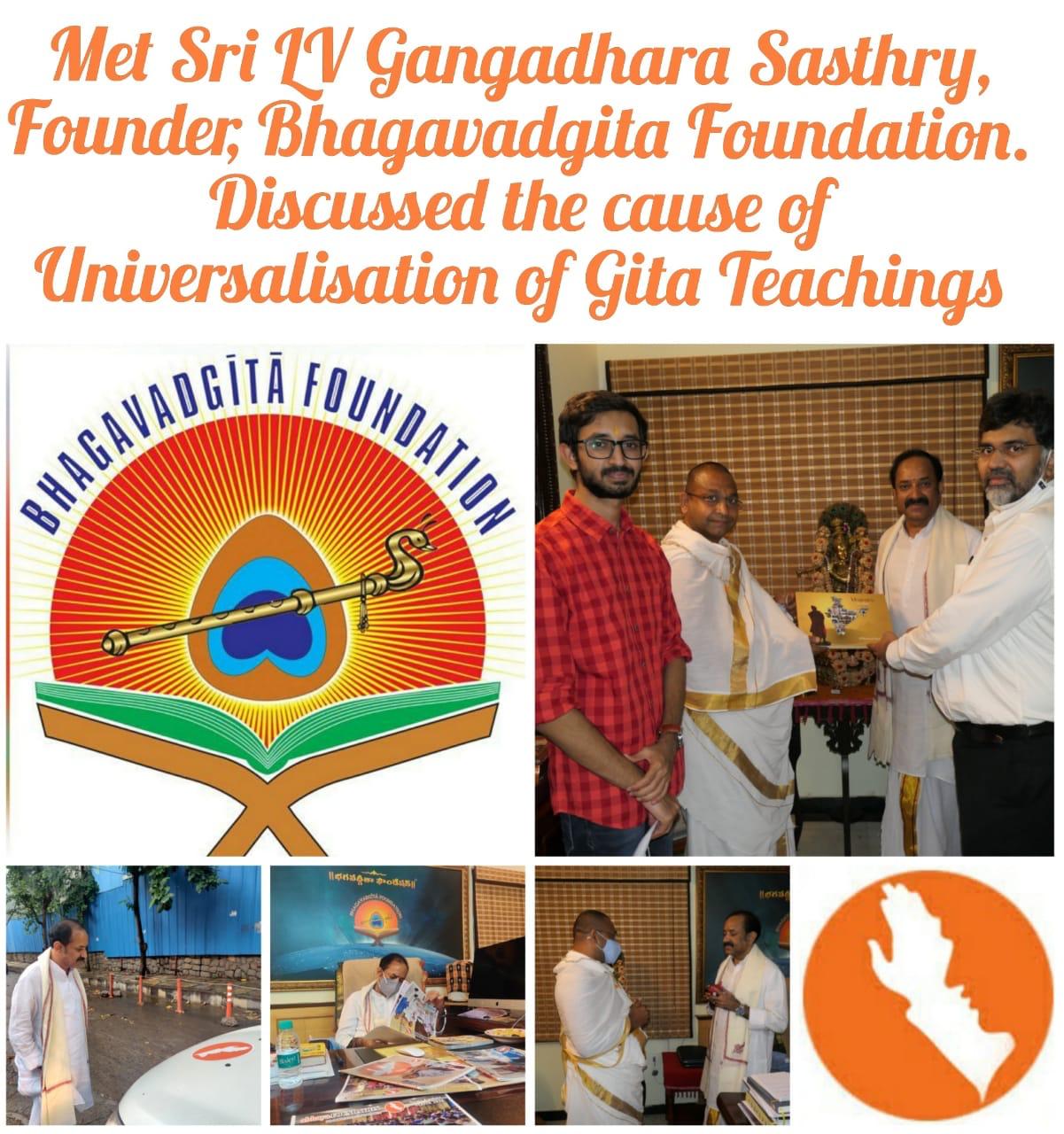 ప్రసిద్ధ సామాజిక సేవా సంస్థ 'అభయ ఫౌండేషన్' వ్యవస్థాపకులు శ్రీ సి ఎస్ బాలచంద్ర - భగవద్గీతా ఫౌండేషన్ కార్యాలయానికి విచ్చేసారు... తాము చేసిన, చేస్తున్న విశేషమైన కార్యక్రమాలను శ్రీ బాలచంద్ర వివరించగా, తమ భగవద్గీతా మిషన్ భవిష్యత్ ప్రాజెక్టులను శ్రీ గంగాధర శాస్త్రి ఆయనకు వివరించారు. ప్రస్తుతం తాము రూపొందిస్తున్న ప్రపంచపు తొలి సంగీత భరిత సంపూర్ణ ఆంగ్ల భగవద్గీత చివరి దశ లో ఉందని తెలిపారు. ఈ కార్యక్రమం లో భగవద్గీతా ఫౌండేషన్ అడ్వొకసి చీఫ్ శ్రీ ఆజాద్ బాబు, సభ్యులు విశ్వతేజ పాల్గొన్నారు...
